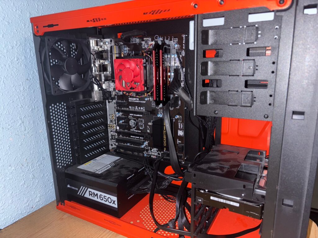 I plugged everything in and pressed the power button… nothing. Ah — I forgot to flip the power supply switch. After switching it to ON, I pressed the power button again and IT’S ALIVE! The system powered on with no issues — except, it didn’t boot. Turns out, there was no operating system on the SSD.